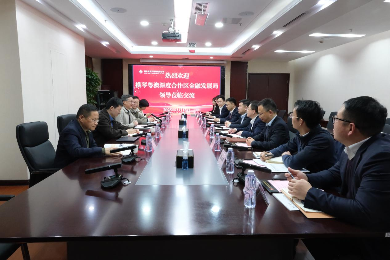 ? 3月18日,橫琴粵澳深度合作區(qū)金融發(fā)展局創(chuàng)新發(fā)展處處長(zhǎng)廖曉文、綜合事務(wù)處處長(zhǎng)郝建臻一行到訪湖北資管,與公司黨委書(shū)記、董事長(zhǎng)李建軍就橫琴優(yōu)惠政策、產(chǎn)業(yè)升級(jí)等進(jìn)行了深入交流。
